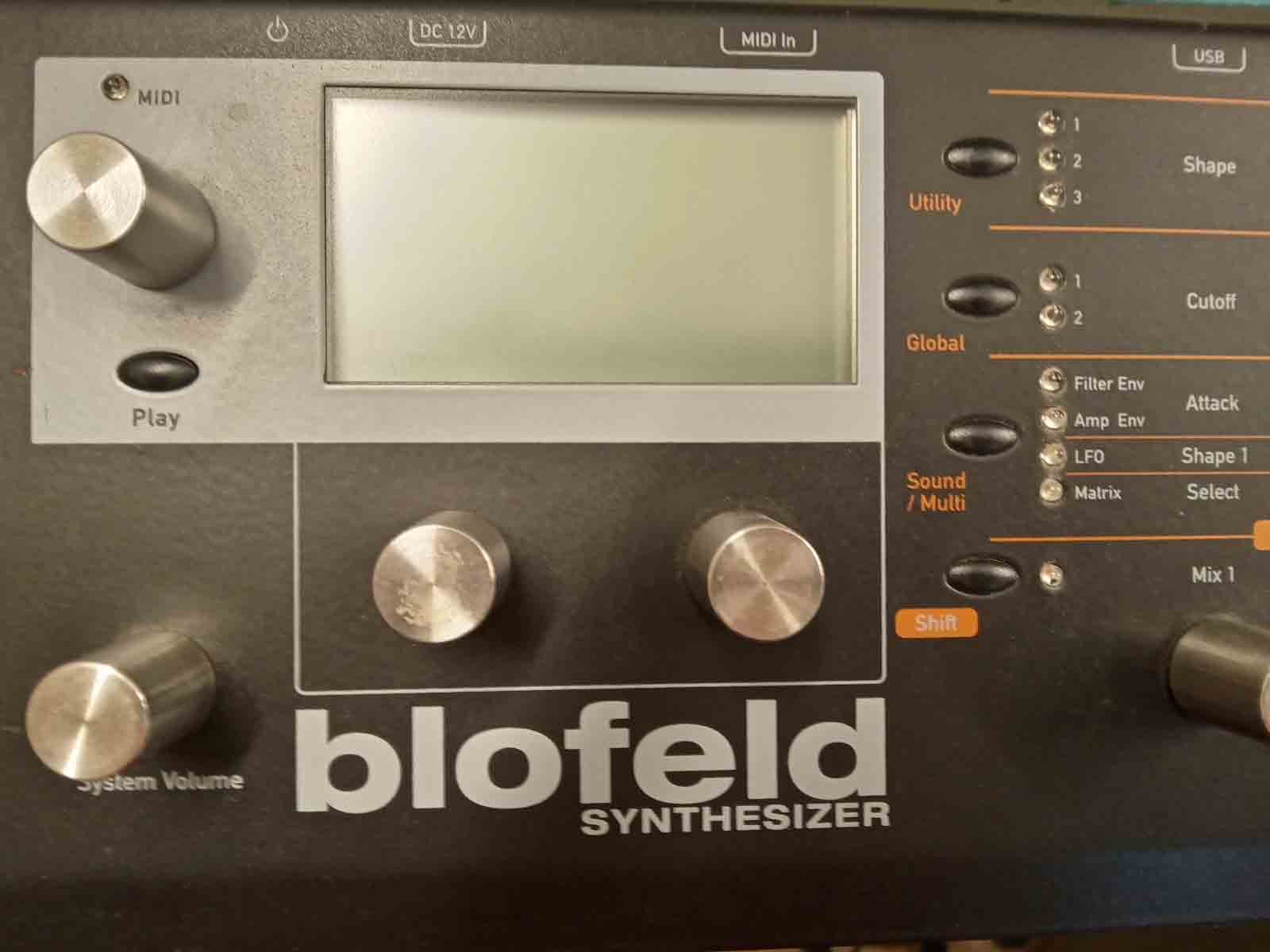 The Waldorf Blofeld is a synthesizer combining virtual analogue synthesis with wavetable synthesis and FM synthesis. It is available as a small desktop unit and as a 49 key velocity and aftertouch sensitive keyboard version. More