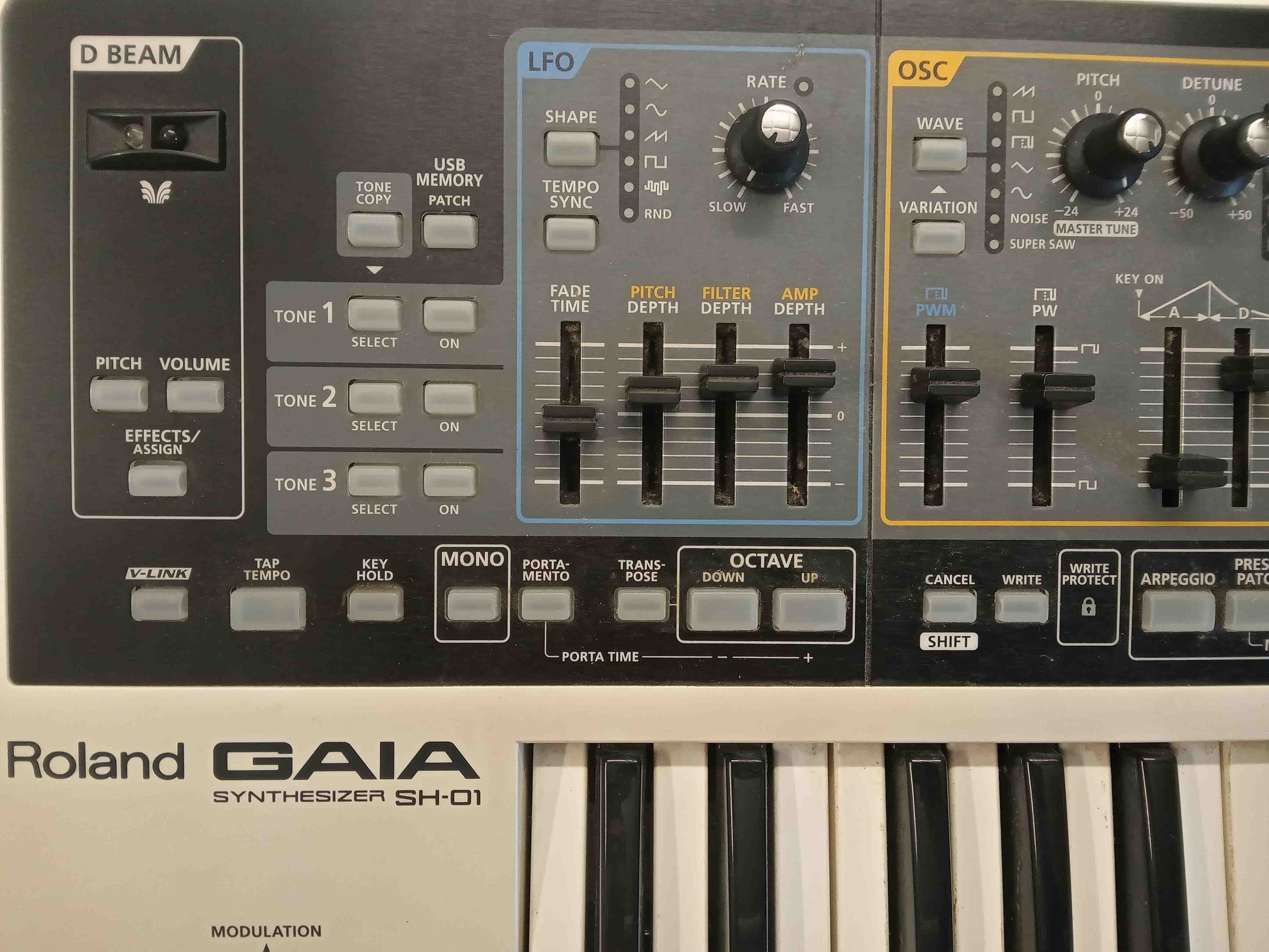 The Roland GAIA SH-01 Virtual Analog Synthesizer is lightweight, features 37 velocity sensitive keys and 3 virtual analog sound engines that me be layered to achieve potent virtual analog sounds. More