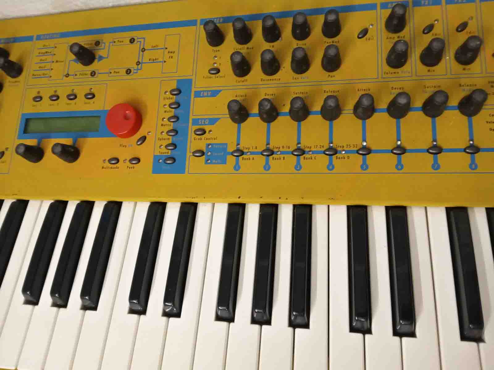 The Waldorf Q is a professional virtual analog synthesizer well suited for demanding performance and studio work! The Q was a large and bright yellow beast but now they come in a sleek dark grey look. More